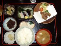 白鯨亭の定食。刺身、サザエつぼ焼き、鮪煮つけ、鯨竜田揚げ等