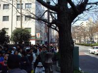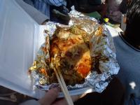 広島焼。作り方は広島でみたそのものでした。500円。食券を買うのに行列、お好み焼きを引きかえるのに行列...。