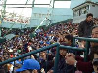試合終了と共に紙テープが舞いました。私も投げました(1個70円)