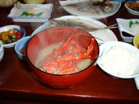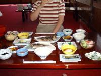 朝っぱらから豪華です(^○^)。えびの頭が入った味噌汁は出汁が良く出ていて美味でした。