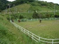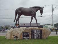 日高あたりまでくると牧場もちらほらと見えてきます。門別を過ぎて新冠でひとやすみです。通称「サラブレッド銀座」と呼ばれる通りの入り口にあるパーキングスペース。周りは牧場だらけです。すぐ近くにも牧場があります。