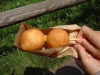売店にてポテトドック。ケチャップはつけないほうがおいしいとの売店のおっちゃんの言葉。