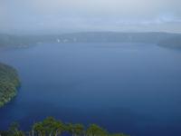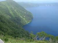 摩周湖へ到着。第一展望台はいつのまにか有料になっていたので、第三展望台へ。なんとか霧も晴れて美しい青い湖面を望むことができました(^○^)。
