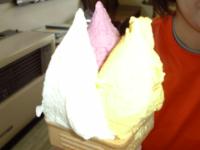 昼食のために川湯温泉駅にあるオーチャードグラスへ向かいましたが、混んでいたのであきらめてアイスを食べに行きます。アイスクリームというよりはジェラートでしたがとってもおいしかったです。