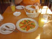 朝食はハーブ、トマトの入ったオムレツに自家製パンです。