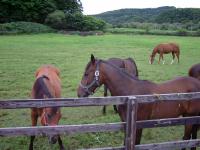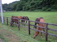 静内へ近づくについれて牧場が増えて来ました。途中、車を止めて草を食む姿を眺めました。