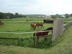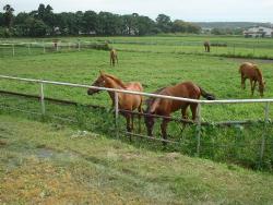 そうこうしているうちに、車ででかけていた牧場の方が戻っていらしたのでドーベルの所在をきいたところ、なんとその日は産駒とともに定期検診にでかけており夕方遅くならないと戻らないとのこと(T_T)。「今日帰っちゃうの?」と牧場の方にいかにも残念そうに声をかけられてしまいました。せっかくなので、許可を頂いて牧場の様子を写真に収めさせていただきました。次回は絶対にドーベルに会うぞ!!